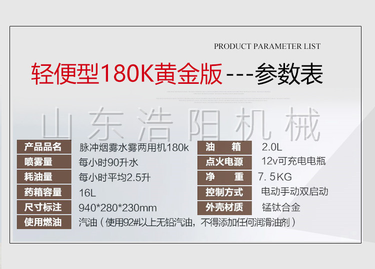 6,功率大,喷出烟雾和水雾,渗透性好,特别是在陡坡和恶劣的路况下,功效越来越显著;